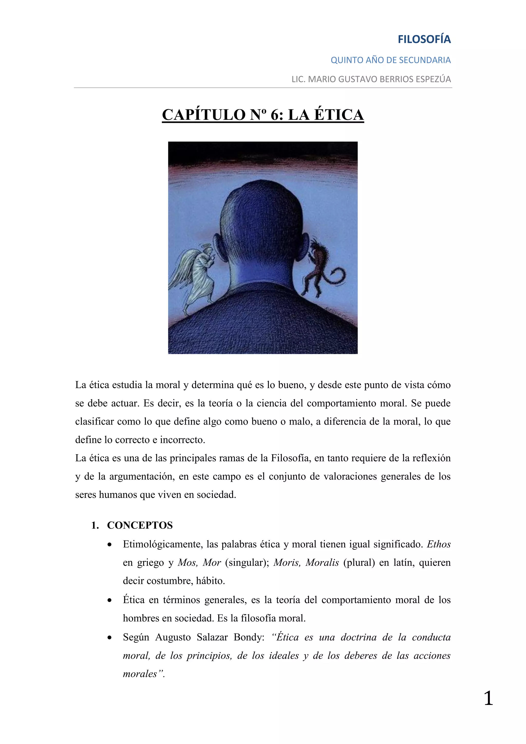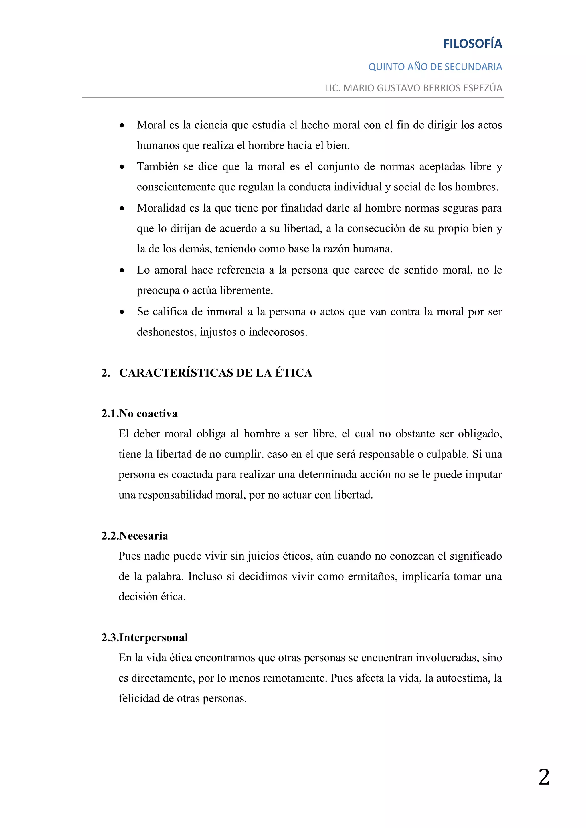Este documento presenta una introducción a la ética. Define la ética como la teoría o ciencia del comportamiento moral y cómo se debe actuar de acuerdo con lo bueno. Distingue la ética de la moral, señalando que la ética es teórica mientras que la moral es práctica. Explora las características, diferencias y relación entre la ética y la moral, y examina cómo la ética se relaciona con la sociedad, la política, la ciencia y los valores fundamentales como el bien, la justicia y la dignidad.