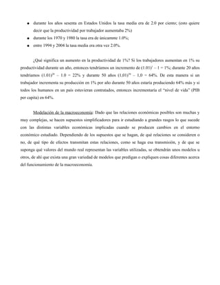 Este documento presenta una introducción a la macroeconomía. Explica que la macroeconomía estudia la economía a nivel agregado, examinando variables como la producción total, el empleo, los precios y el ingreso. También describe los conceptos básicos de la macroeconomía, incluyendo el Producto Interno Bruto, el desempleo y la inflación.