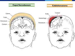 El caput succedaneum es una inflamación difusa del cuero cabelludo del recién nacido causada por la presión de la cabeza del bebé durante el parto. Se caracteriza por una hinchazón del cuero cabelludo sin límites definidos que desaparece espontáneamente sin tratamiento a medida que el bebé se recupera. Los factores que pueden contribuir a su aparición incluyen un primer embarazo, desproporción cefalopélvica, labor de parto prolongada o rápida, y el uso de fó