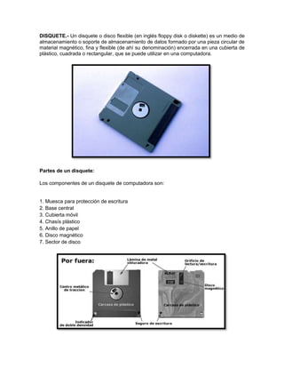 El documento describe diferentes periféricos de almacenamiento como la memoria USB, disquete, disco duro, cinta magnética y grabadoras de DVD. Detalla los componentes y usos de cada uno. También incluye una lista de integrantes que realizaron el trabajo y enlaces a páginas web sobre los temas.