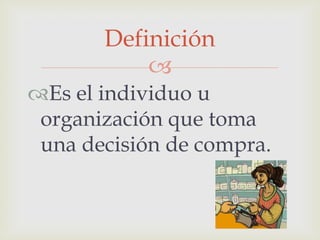 El documento define al consumidor como la persona que compra un producto o servicio, al cliente como un consumidor habitual de una empresa, y al usuario como quien disfruta habitualmente de un servicio o producto. Explica las necesidades humanas según la pirámide de Maslow y describe diferentes tipos de clientes - racional, reservado, indeciso, dominante, hablador e impaciente - según su comportamiento. Finalmente, resume las características que definen a los clientes como su edad, sexo, clase social, ingresos, estilo de vida y motivaciones.