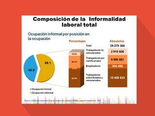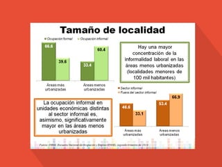 Este documento explora la realidad de la informalidad en Monterrey, México. Discuta que la informalidad surge debido a que los costos de operar formalmente superan los beneficios, como impuestos altos y baja capacidad de redistribución de ingresos. También analiza los incentivos para operar en la informalidad como mayores ganancias y facilidad para establecer un negocio. Finalmente, documenta como los delegados locales cobran cuotas a los vendedores informales a cambio de representación y servicios, aunque a veces de manera coercitiva
