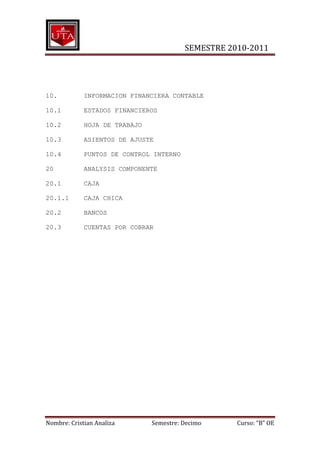 Este documento presenta los estados financieros de dos empresas al 31 de diciembre de 2010. El primer estado financiero corresponde a la empresa Comercial Compras y Ventas S.A. e incluye el balance general con los activos, pasivos y patrimonio de la empresa. El segundo estado financiero corresponde a la empresa Curtiduría Hidalgo y también presenta el balance general con la situación financiera de la empresa a dicha fecha.