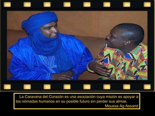 Moussa Ag Assarid fundó una escuela tuareg en el desierto del Sahara y lanzó "La Caravana del Corazón", un proyecto solidario que viaja de París a Tombuctú y Taboye con 4 objetivos: mejorar la atención médica, el transporte de niños a la escuela, fomentar los vínculos entre pastores y agricultores, y preservar la cultura tuareg. Moussa, el mayor de 13 hermanos de una familia nómada tuareg, ahora promueve este proyecto después de