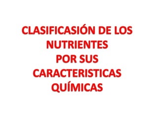 Los carbohidratos se clasifican en monosacáridos, oligosacáridos y polisacáridos dependiendo del número de unidades que los componen. Los monosacáridos pueden ser aldosas u osas dependiendo de si el grupo carbonilo terminal es un aldehído o cetona. Los monosacáridos más comunes son la glucosa, fructosa, manosa y galactosa. Los oligosacáridos incluyen la lactosa y sacarosa y los polisacáridos principales son el almidón, glucógeno y celulosa