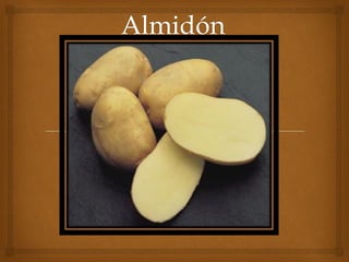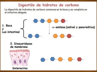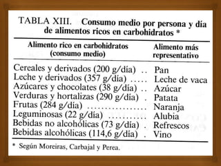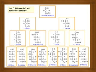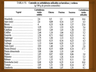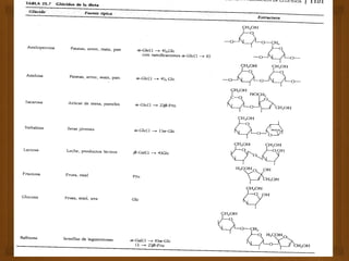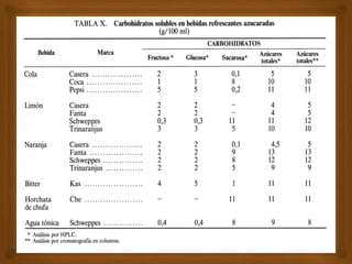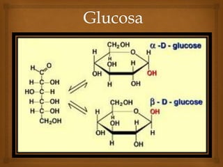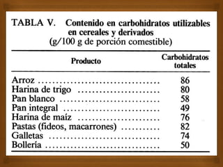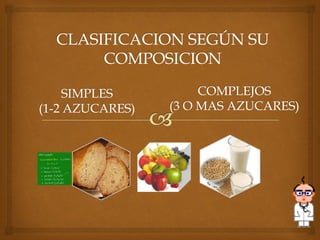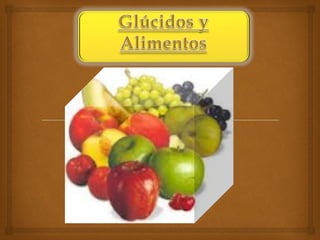 El documento habla sobre los hidratos de carbono, incluyendo azúcares, y su importancia como componentes de la alimentación y fuente de energía para el cuerpo. Explica que los hidratos de carbono incluyen azúcares como la fructosa, galactosa, lactosa, maltosa y sacarosa. También forman la pared y el sosten de los vegetales, y producen 4 kilocalorías por gramo al ser almacenados en el hígado y los músculos como glucógeno.