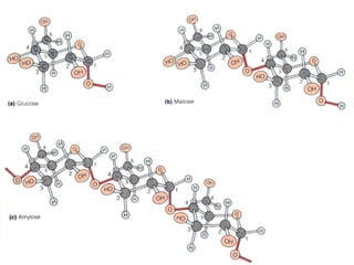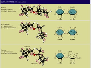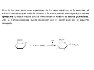 Los carbohidratos son biomoléculas esenciales compuestas principalmente de carbono, hidrógeno y oxígeno. Sirven como fuente de energía, componentes estructurales y para unir otras moléculas. Los monosacáridos son la unidad básica y pueden unirse en oligo y polisacáridos. Desempeñan papeles importantes como almacenamiento de energía, estructuras celulares y funciones no estructurales.