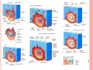 El documento resume los procesos de desarrollo del sistema cardiovascular desde la tercera semana de gestación. En la tercera semana se inicia la vasculogenesis y angiogénesis en el mesodermo extraembrionario, formándose los primeros vasos sanguíneos. Además, en la tercera semana comienza la gastrulación y diferenciación de las tres capas germinativas. En la cuarta semana se forma el corazón a partir de los tubos cardiacos y se inicia la circulación sanguínea primitiva. Durante la cuarta y
