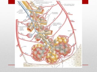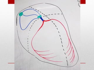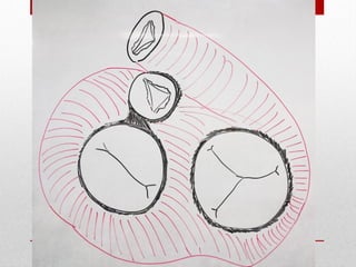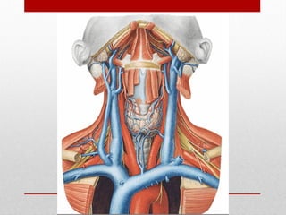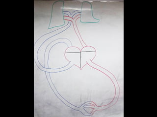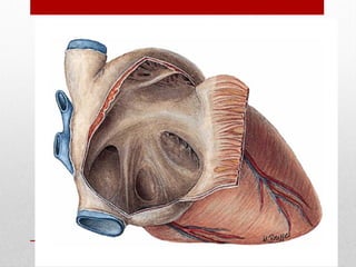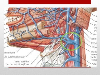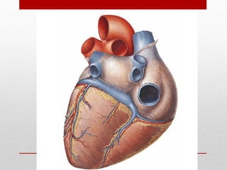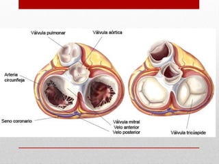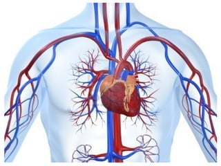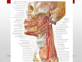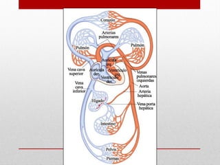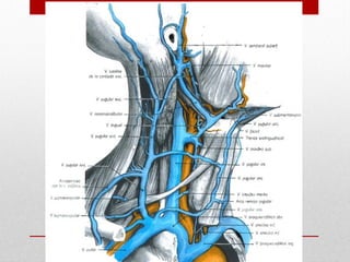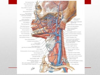 El documento describe la anatomía del sistema cardiovascular humano, enfocándose en la estructura y funciones del corazón, sus cavidades, válvulas y sistemas de conducción. También detalla las arterias y venas principales que irrigan y drenan la sangre, así como su disposición y ramas. Finalmente, se menciona el sistema venoso que recoge la sangre de la cabeza y cuello, describiendo sus conductos y anastomosis.