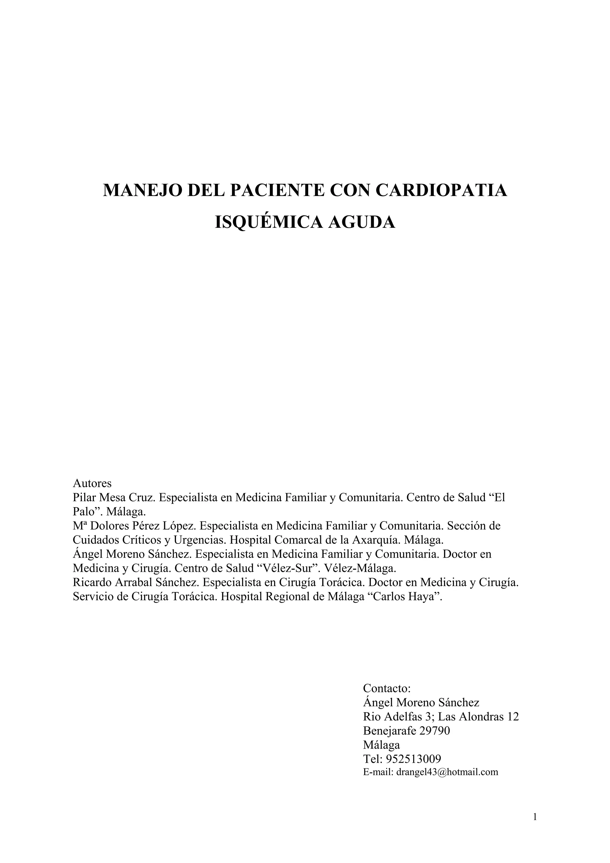 Este documento trata sobre el manejo del paciente con cardiopatía isquémica aguda. Describe la angina estable y los síndromes coronarios agudos como la angina inestable y el infarto agudo de miocardio. Explica la etiología, aproximación diagnóstica y tratamiento de estas condiciones, incluyendo medidas generales y farmacológicas. El objetivo es evitar la progresión de la enfermedad coronaria, mejorar la calidad de vida del paciente y prevenir complicaciones.