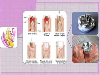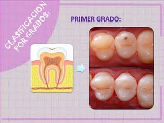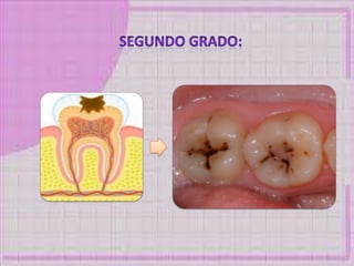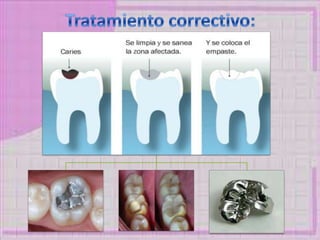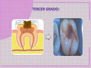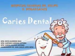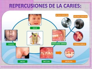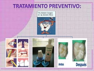 Este documento presenta información sobre caries dental, incluyendo sus causas, bacterias asociadas, tipos, protocolos de atención para pacientes con diabetes, hipertensión y embarazadas. Resume los pasos clave para el tratamiento dental seguro de estas poblaciones de alto riesgo.