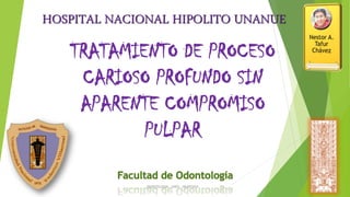 El documento aborda el tratamiento de la caries dental profunda y define la caries como una enfermedad infecciosa que provoca la descomposición de los tejidos duros del diente. Se enfatiza el uso de técnicas mínimamente invasivas, como la eliminación de caries por etapas, que permiten proteger la pulpa dental y evitar exposiciones innecesarias. Además, se discuten diferentes enfoques y materiales utilizados en tratamientos, destacando la importancia de la eliminación selectiva de dentina infectada y el control clínico posterior.