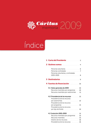 La memoria de Cáritas 2009 detalla el impacto de la crisis económica en la actividad de la organización, reflejando un aumento en la precariedad social y la necesidad de asistencia a los ciudadanos vulnerables. A pesar de los desafíos, la memoria resalta la creciente solidaridad de la sociedad con un incremento en recursos y voluntarios, que apoyan la lucha contra la pobreza y la exclusión social. Cáritas, con su compromiso hacia la justicia social, continúa trabajando en diversas áreas y haciendo un llamado a la sociedad para abordar la indiferencia frente a la pobreza.