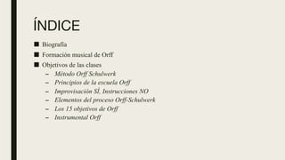 Carl Orff fue un compositor y pedagogo alemán conocido por crear el método Orff Schulwerk, que promueve la enseñanza de la música a través de la voz, el movimiento y la improvisación. Su enfoque se basa en la participación activa de los estudiantes y el uso de instrumentos de percusión, fomentando la creatividad y el desarrollo personal. Orff también es famoso por su obra 'Carmina Burana', que combina música y poesía medieval con ritmos enérgicos.
