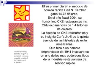 Carl's Jr. comenzó como un pequeño negocio en 1941 y se ha convertido en una de las cadenas de comida rápida más grandes de Estados Unidos. La compañía CKE Restaurants Inc., propietaria de Carl's Jr., Hardee's y otras marcas, ahora opera más de 3,200 restaurantes en 43 estados y 13 países, con ventas anuales de más de $1,400 millones. La historia de éxito de Carl's Jr. demuestra el poder del espíritu emprendedor estadounidense.