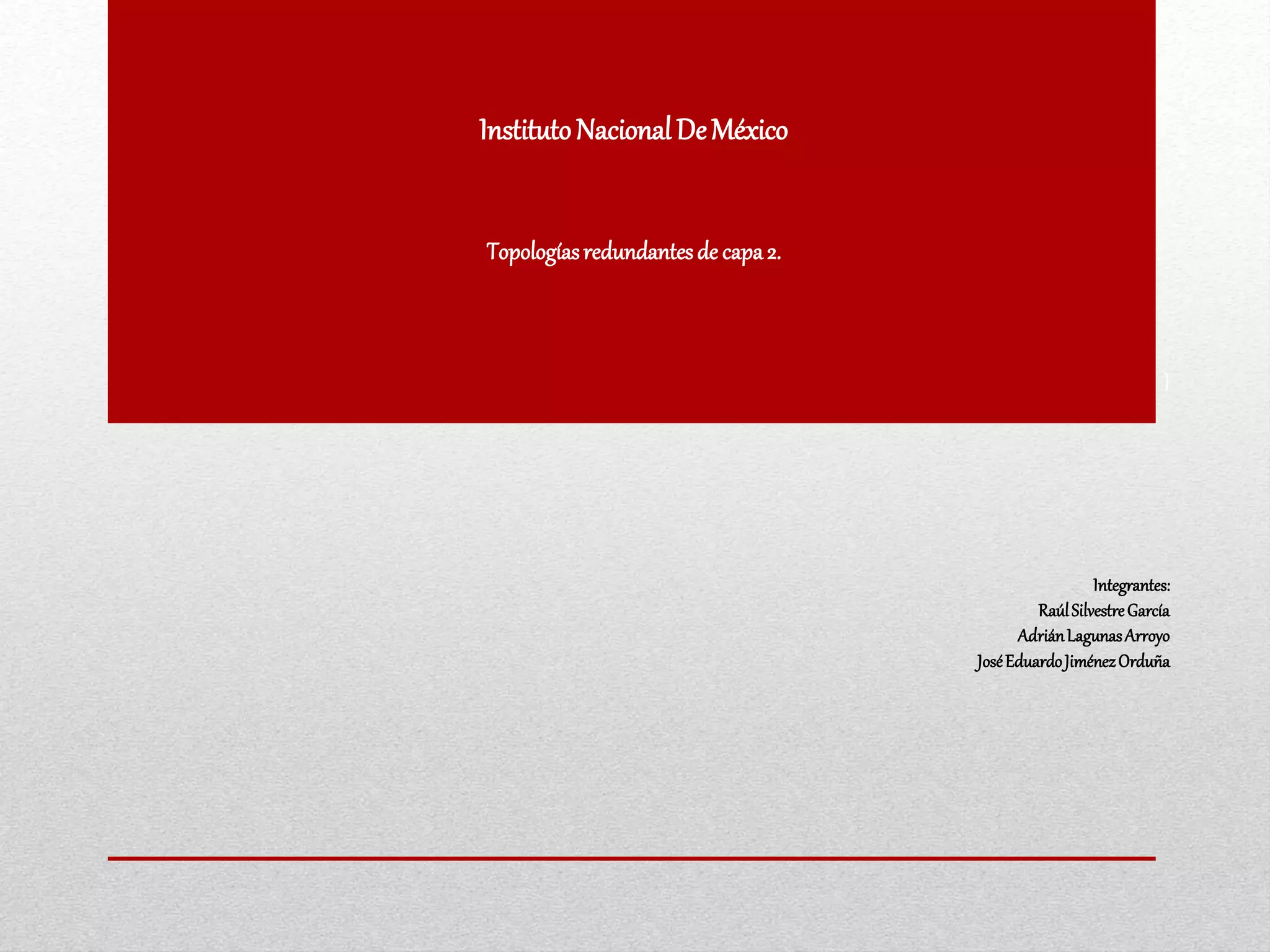 Este documento describe las topologías redundantes de capa 2 y los problemas que pueden surgir al implementar redundancia en una red, como bucles de capa 2 y tormentas de broadcast. Explica que la redundancia mejora la disponibilidad al agregar equipos y rutas alternativas, pero que sin el protocolo STP pueden ocurrir bucles que hagan que los paquetes se repitan indefinidamente entre switches, consumiendo ancho de banda. También cubre que las tramas duplicadas, tanto de broadcast como de unicast, son problemas comunes en redes con bucles de capa 2
