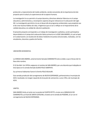Este documento describe un proyecto para motivar a estudiantes de 4° grado a conservar el medio ambiente mediante las TIC. El proyecto tiene como objetivos formar hábitos sanos de salud, higiene, orden y limpieza; y fortalecer la cultura de protección ambiental. Se implementarán actividades como recolección de residuos y construcción de una posa para depositarlos, usando recursos digitales y metodologías participativas.