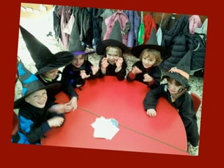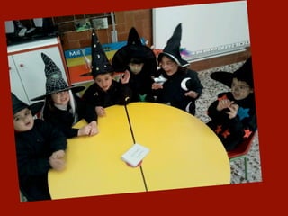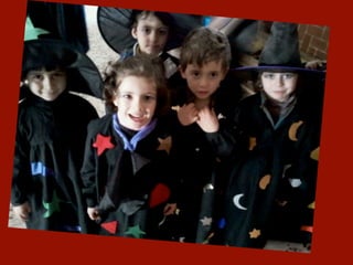 El documento habla sobre el carnaval en febrero de 2012 para niños, con menciones de brujas y brujos creando un ambiente terrorífico.