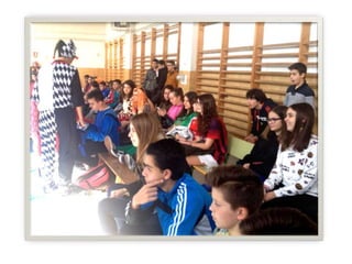 Los alumnos de 1o de Bach del CENTRO organizaron una fiesta de carnaval el 5 y 6 de febrero en el pabellón con juegos, concursos de disfraces individuales y de grupos, y un photocall. Hubo concursos para los mejores disfraces individuales y de grupos, así como varios juegos, y todos se divirtieron mucho en la celebración, agradeciendo a todos su participación y a la espera del próximo carnaval.