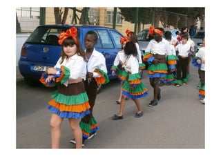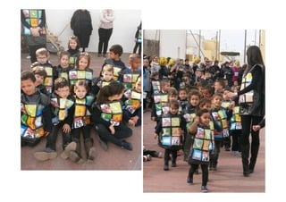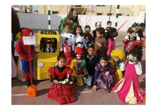 Este documento resume las actividades de Carnaval realizadas en el CEIP San Pedro Apóstol durante el curso 2013-2014. Se celebró un concurso de disfraces entre las diferentes clases de Infantil y Primaria, otorgándose premios a los mejores disfraces. Para finalizar, los alumnos participaron en un pasacalles acompañando a una sardina que fue enterrada, dando por concluidas las festividades de Carnaval de ese año.