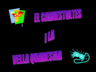 El documento habla sobre las celebraciones de Carnaval y la llegada de la Cuaresma. Describe las actividades del Carnaval como comer cocas y quemar al personaje del Carnaval. También menciona el entierro de una sardina y luego la llegada de la Vieja Cuaresma.