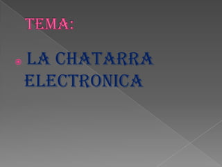 El documento habla sobre la chatarra electrónica o desechos electrónicos, que son productos eléctricos y electrónicos desechados como computadoras, teléfonos, televisores y electrodomésticos. Explica que se producen alrededor de 50 millones de toneladas de estos desechos cada año, los cuales contienen materiales tóxicos como el mercurio y el plomo que son dañinos para la salud y el medio ambiente. También describe algunas medidas para reducir los desechos electrónicos, como el rec