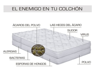 El documento habla sobre el problema de los ácaros en los hoteles de Medellín. Los ácaros se encuentran en colchones, almohadas, tapetes y otras áreas húmedas de los hoteles y pueden causar alergias y enfermedades. La empresa Purifil Internacional ofrece purificadores de aire Mini Hepa que usan ozono e ionización para eliminar virus, bacterias, microorganismos y ácaros, resolviendo el problema de una manera que agrega valor a los huéspedes.