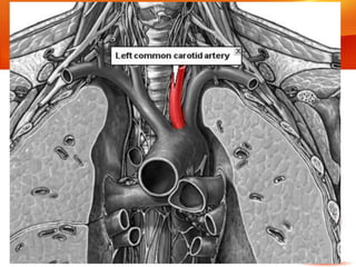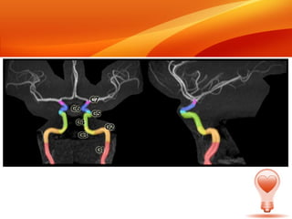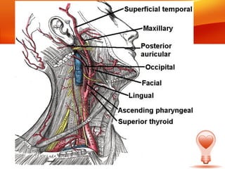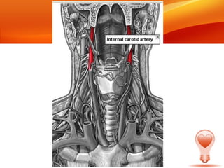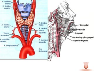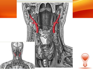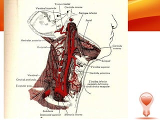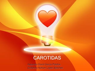 Las carótidas son los principales vasos arteriales que proveen irrigación a la cabeza y el cuello. La carótida derecha nace del tronco braquiocefálico mientras que la izquierda nace directamente de la aorta. Cada carótida se bifurca en las arterias carótida externa e interna, las cuales proveen irrigación a diferentes estructuras de la cabeza y el cuello.