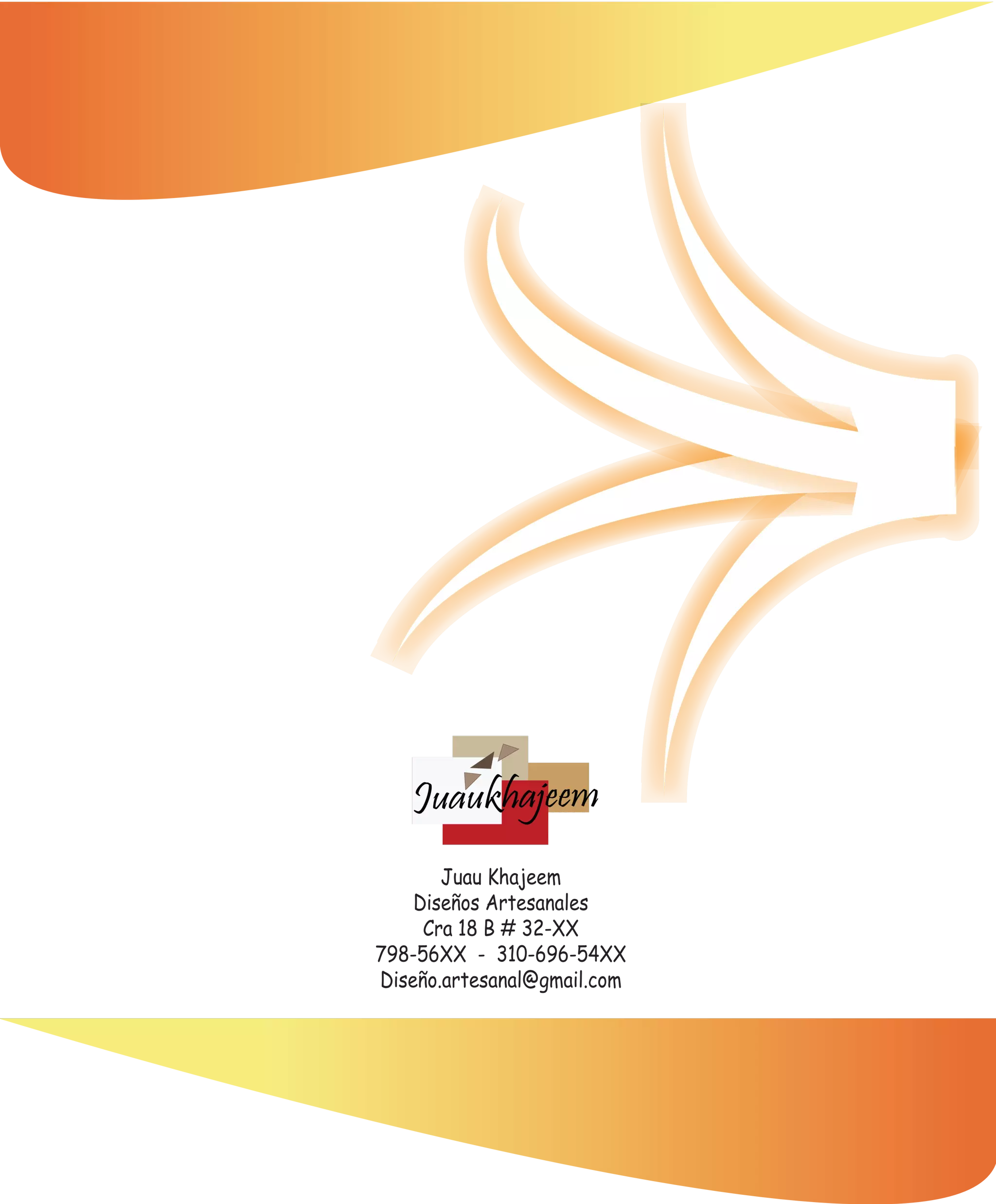 Juau Khajeem ofrece diseños artesanales desde su taller en Cra 18 B # 32-XX. Su número de teléfono es 798-56XX y su correo electrónico es Diseño.artesanal@gmail.com. Khajeem crea piezas artesanales personalizadas para clientes.