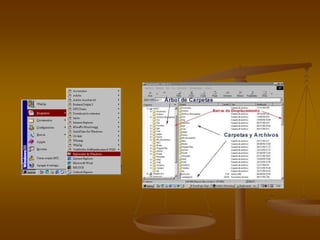 Este documento explica cómo se organizan los archivos en carpetas para facilitar su manejo. Las carpetas permiten agrupar archivos relacionados y ayudan a mantener el orden en el disco duro. Del mismo modo, las subcarpetas permiten una organización jerárquica de los archivos.