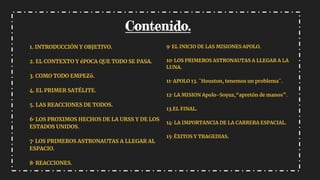 La carrera espacial comenzó en 1957 cuando la Unión Soviética lanzó el Sputnik 1, el primer satélite artificial del mundo. Esto provocó una crisis en Estados Unidos y llevó al establecimiento de la NASA para impulsar el programa espacial estadounidense. Aunque Estados Unidos lanzó su primer satélite, el Explorer 1, en 1958, la Unión Soviética mantuvo la delantera al enviar al primer animal, la perra Laika, al espacio ese mismo año. La competencia tecnológica entre las dos superpotencias