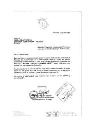 Carta de presentación para internado