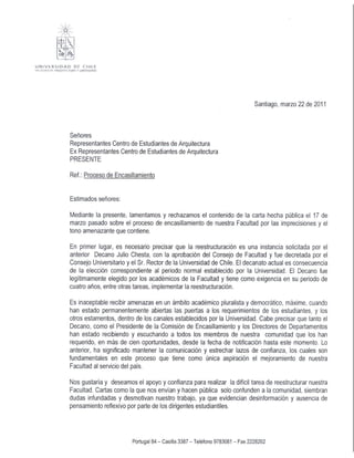 Carta Decano y Vicedecano