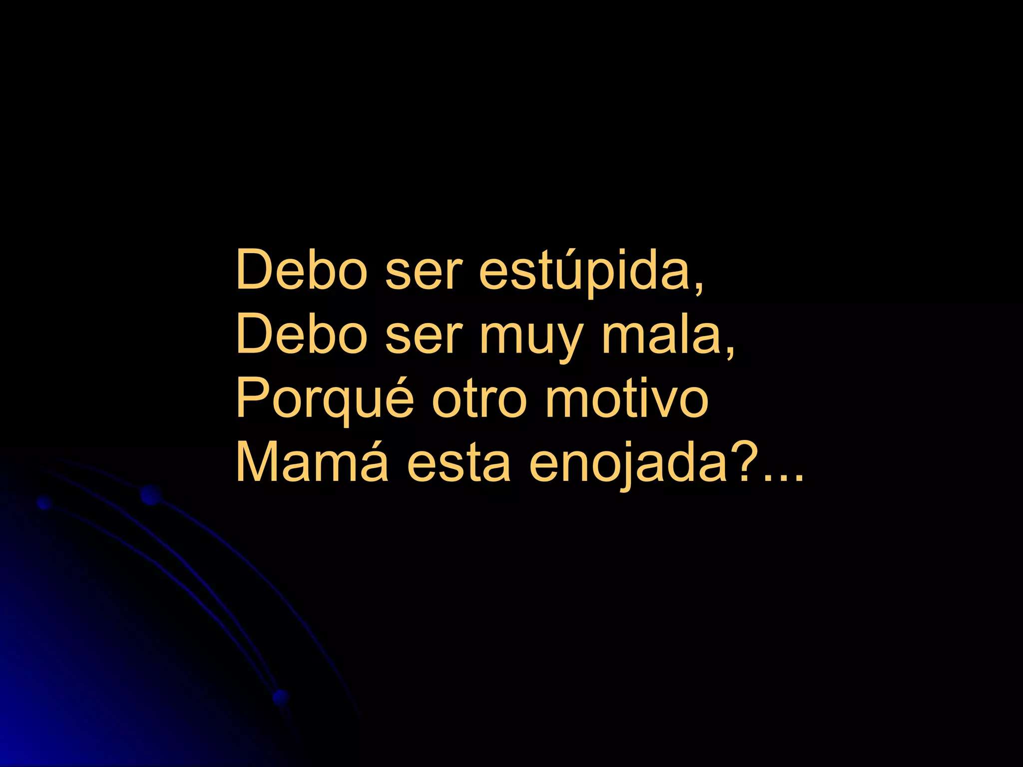 El poema narra la historia de Sarah, una niña de 3 años que sufre abuso físico y emocional por parte de su padre. Sarah experimenta miedo, dolor y soledad debido a los constantes golpes y gritos de su padre cuando llega borracho a casa. Al final, su padre la mata sin piedad. El documento pide ayuda para poner fin al abuso infantil y proteger a los niños como Sarah.