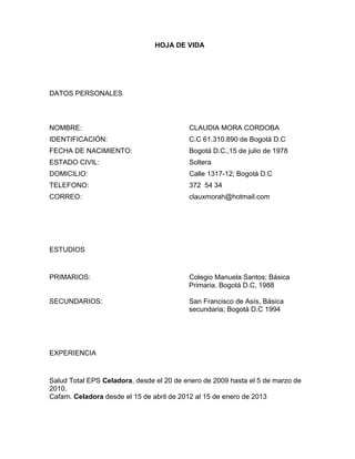 Contadora Lina Marcela Casillas Pardo, EPS Salud y vida. Bogotá D.C, teléfono