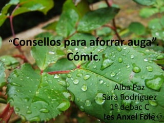 El documento ofrece consejos para ahorrar agua en la vida diaria. Recomienda tomar duchas más cortas en lugar de baños, cerrar el grifo mientras nos lavamos los dientes o manos, y reparar grifos que gotean para prevenir desperdicios.