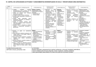 Este documento presenta los objetivos de aprendizaje del área de matemáticas para el tercer grado. Cubre temas como sistemas numéricos, álgebra, funciones, geometría plana y del espacio, y trigonometría. Los estudiantes aprenderán a representar, ordenar y operar con números racionales y reales, resolver ecuaciones cuadráticas, graficar funciones, aplicar teoremas geométricos, y calcular medidas y áreas de figuras.