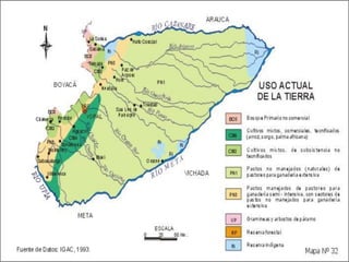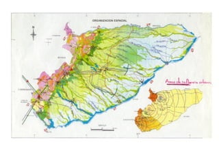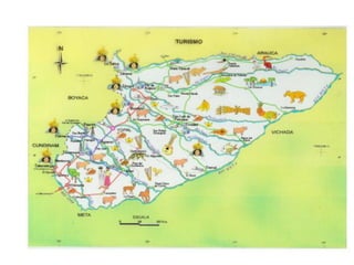 El documento presenta información sobre cartografía temática, incluyendo la ubicación de características de la superficie terrestre, tipos de amenazas, convenciones topográficas, variables visuales como colores y formas, y ejemplos de mapas temáticos como mapas de suelos e isoyetas. También describe formas no cartográficas de representación como gráficos anulares y triangulares.