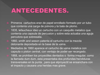Este documento describe los diferentes tipos de rifles, incluyendo rifles de cerrojo, de cerrojo sniper, semiautomáticos, de palanca, monotiro, express, de aire y soft. Explica las características clave de cada tipo de rifle como su mecanismo, versatilidad, precisión y uso común.