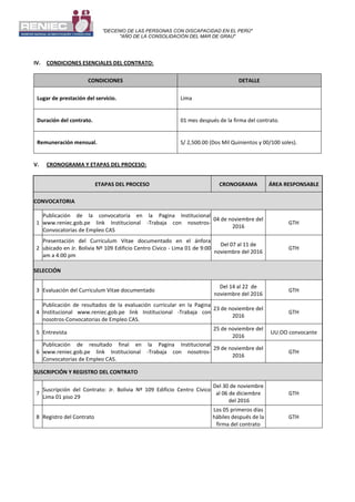 Este documento describe el proceso de selección para contratar a un Técnico de Impresiones en el Registro Nacional de Identificación y Estado Civil (RENIEC). Se requiere un titulado o egresado universitario en ciencias administrativas, ingeniería de sistemas o diseño gráfico con 3 años de experiencia. El proceso incluye la publicación de la convocatoria, evaluación de currículums, entrevistas, y la suscripción de un contrato de 1 mes por S/2,500. Se evalúan los requisitos, experiencia y