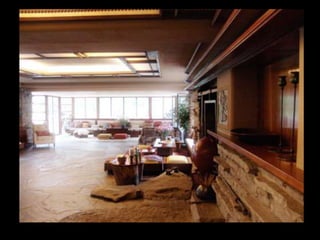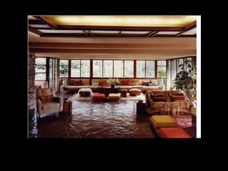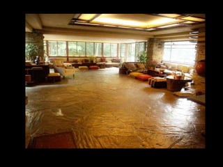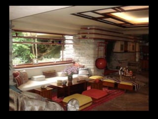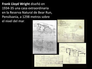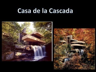 Frank Lloyd Wright diseñó la Casa de la Cascada en 1934-35 como casa de fin de semana para el Sr. Edgar Kaufmann y su familia. La casa se integra armoniosamente con la cascada natural situada justo debajo, con el sonido del agua escuchándose por toda la casa. Wright se inspiró en la arquitectura japonesa para crear esta armonía entre el hombre y la naturaleza. La casa gira en torno a una chimenea central y las rocas de la cascada asoman parcialmente en el interior a través de ella.