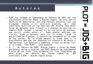 Este documento describe el proyecto de la Casa Marítima de la Juventud en Copenhague, Dinamarca diseñado por el estudio de arquitectura PLOT. El proyecto consistió en cubrir todo el sitio con una cubierta ondulada de madera que integra los espacios de la casa, el taller y el almacén de barcos, además de generar un gran patio de juegos exterior. La forma de la cubierta se asemeja a la topografía natural del terreno y solucionó el problema de un sitio contaminado convirtiéndolo en