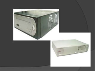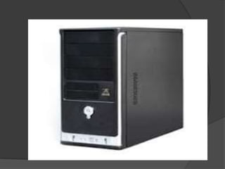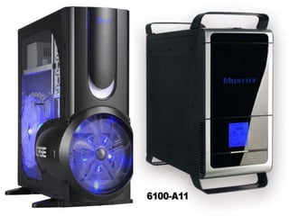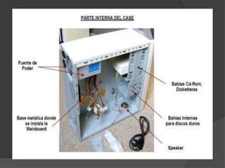 El documento describe los diferentes tipos de case o gabinetes para computadoras. Explica que un case es la estructura que aloja los componentes internos de la computadora y los protege. Luego detalla las partes principales de un case como bahías, botones de encendido y reinicio, LEDs indicadores, y tipos como case horizontal, vertical en formatos MiniTower, FullTower y ATX Mini. Finalmente menciona algunas marcas de case.