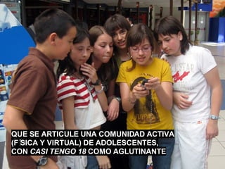 CASI TENGO 18 es un programa de acción cultural dirigido a los/as adolescentes, a través del uso de las TIC’s y de estrategias pedagógicas de creatividad y educación informal. http://www.casitengo18.com/