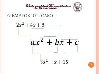 El documento explica el procedimiento para descomponer un trinomio en dos factores, comenzando por multiplicar el trinomio por el coeficiente del término cuadrado. Se extrae la raíz cuadrada del primer término y se identifican dos números que multiplicados dan un valor específico y sumados dan otro. Finalmente, se ajustan los factores de acuerdo con el coeficiente inicial para obtener la solución correcta.