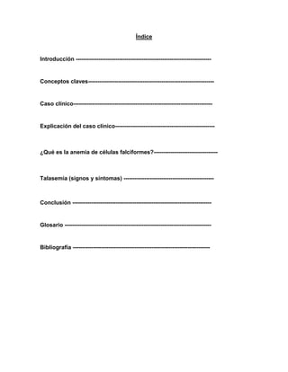 El documento presenta el caso clínico de una mujer de 26 años con anemia falciforme. Presentaba dolores musculares y articulares, fiebre y otros síntomas. Exámenes revelaron anemia, hepatomegalia, derrame pleural y otros hallazgos. Pruebas específicas confirmaron el diagnóstico de anemia falciforme heterocigota con beta talasemia. Fue dada de alta con tratamiento adecuado.