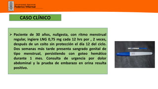 Una mujer de 30 años tomó anticoncepción de emergencia después de un coito sin protección. Dos semanas más tarde presentó sangrado y dolor abdominal. La ecografía mostró una imagen de anillo tubario en el anexo izquierdo, sugiriendo un embarazo ectópico. Se realizó una laparoscopia que confirmó un hematosalpinx ampular izquierdo, por lo que se efectuó una salpingectomía. El estudio histológico reveló la presencia de vellosidades coriales y restos embrionarios