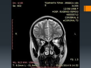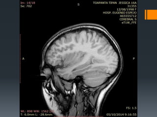Este caso clínico describe una paciente de 16 años que presenta crisis convulsivas desde hace 8 meses. Se realizaron varios exámenes de imagen, incluyendo TC y RMN cerebral, que mostraron la presencia de una lesión intraaxial supratentorial que fue diagnosticada como un quiste del velo interpuesto cavitado. El tratamiento recomendado fue la neuroendoscopia con fenetración quística y permeabilización del acueducto para resolver la sintomatología.