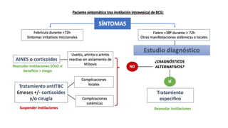 Este documento presenta el caso de un hombre de 62 años con poliartritis inflamatoria que podría deberse a una infección por BCG tras recibir tratamiento intravesical con BCG para cáncer de vejiga. Describe el diagnóstico diferencial, las manifestaciones clínicas y el tratamiento de la infección por BCG, así como la resolución del caso particular.