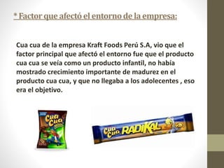 La empresa Kraft Foods Perú analizó que el producto Cua Cua era visto como infantil y no llegaba a los adolescentes. Su imagen no generaba identificación en los adolescentes. Por ello, la empresa implementó un plan estratégico para posicionar a Cua Cua como un producto para adolescentes, utilizando redes sociales como Facebook y YouTube para crear una campaña e historias que intrigan e impulsen el tráfico a las redes sociales, con el objetivo de conquistar a los adolescentes.